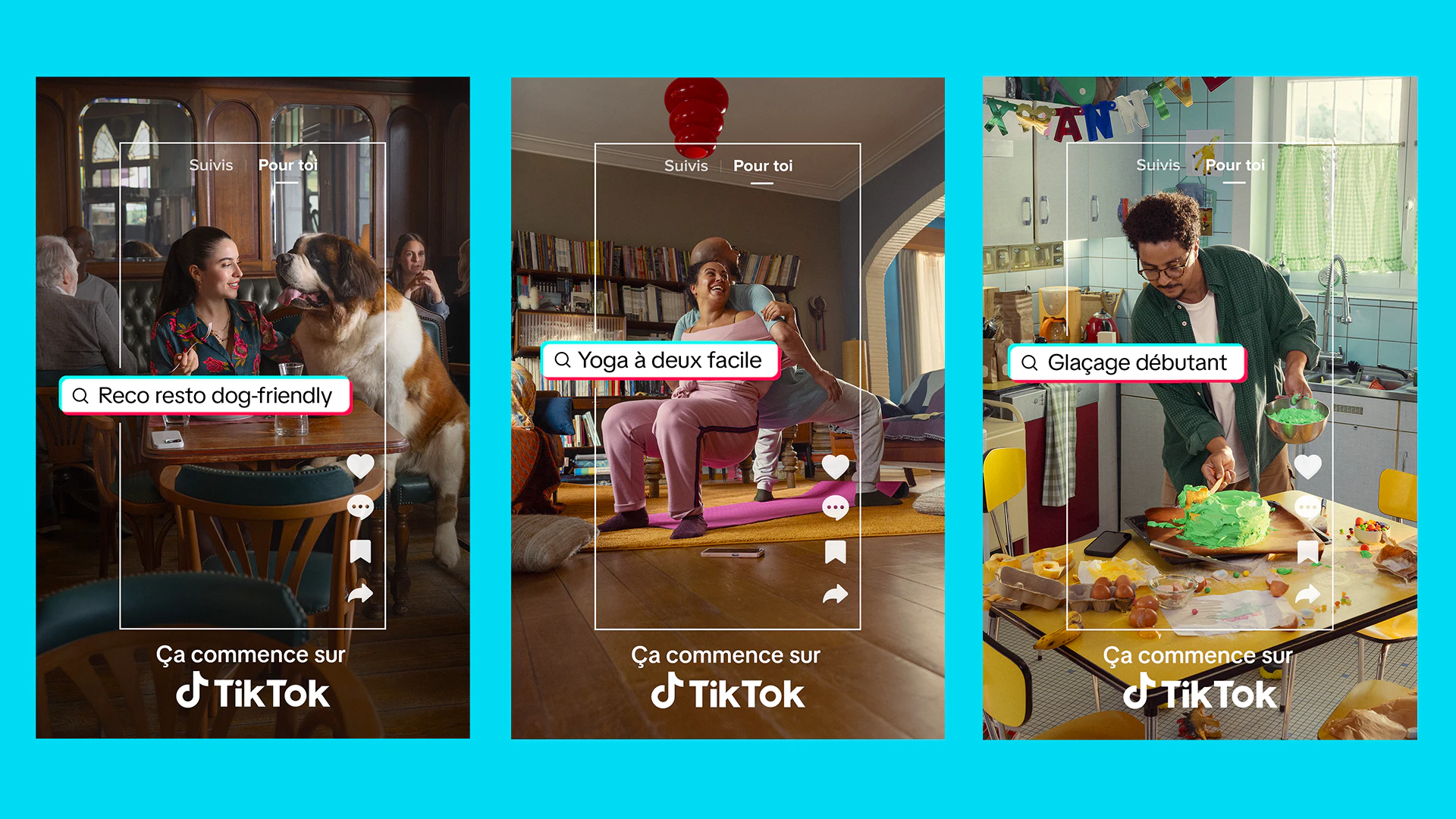 Pour accompagner le repositionnement stratégique de la marque avec la nouvelle signature “Ça commence sur TikTok”, la campagne célèbre les débuts et l'inexpérience de ceux qui se lancent dans de nouvelles aventures. Trois créations montrent un père pâtissier, des yogis et un date... inhabituel.