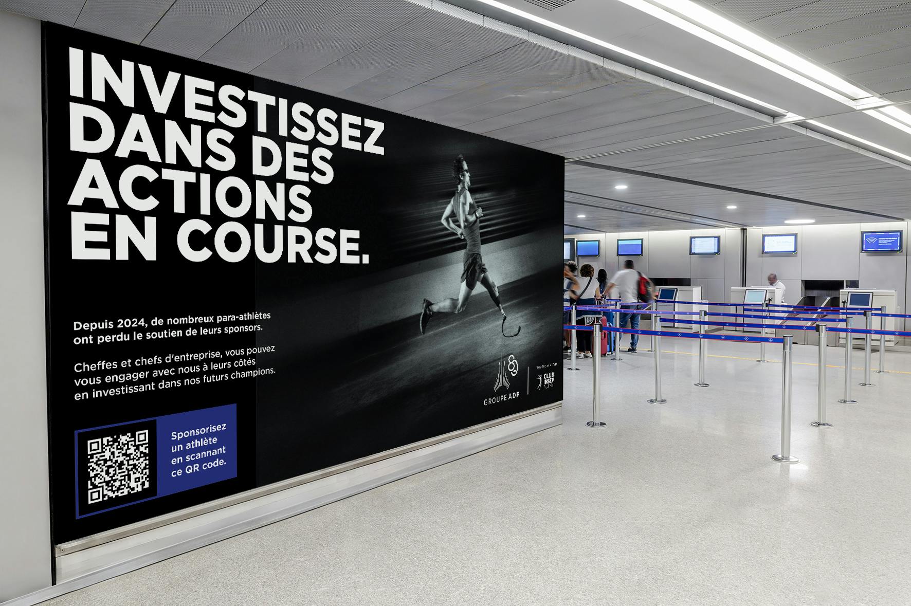 This symbolic operation marked the official launch of a major sponsorship campaign. Messages calling on companies to get involved were displayed across all screens in Paris airports, as well as in the press.